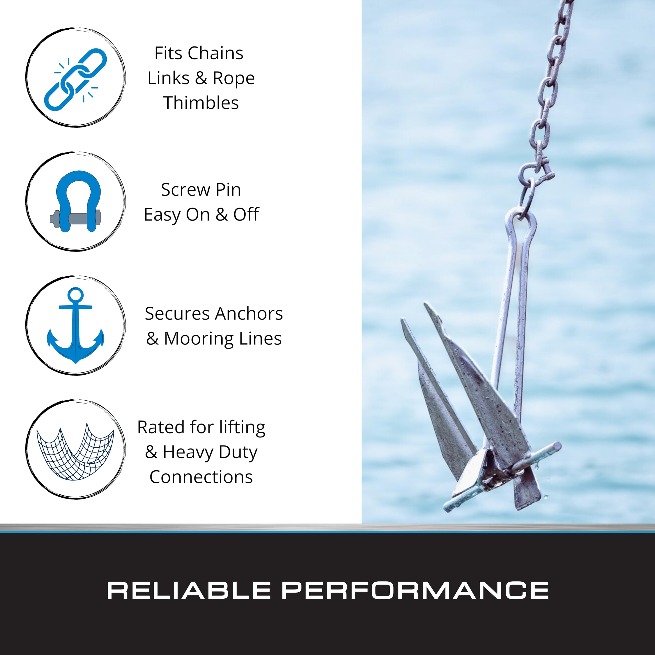 - [450 lb Working Load Limit] – Each shackle is rated to handle up to 450 pounds, making it strong enough for anchor chains, boat bows, towing equipment, or connecting hardware in tough environments