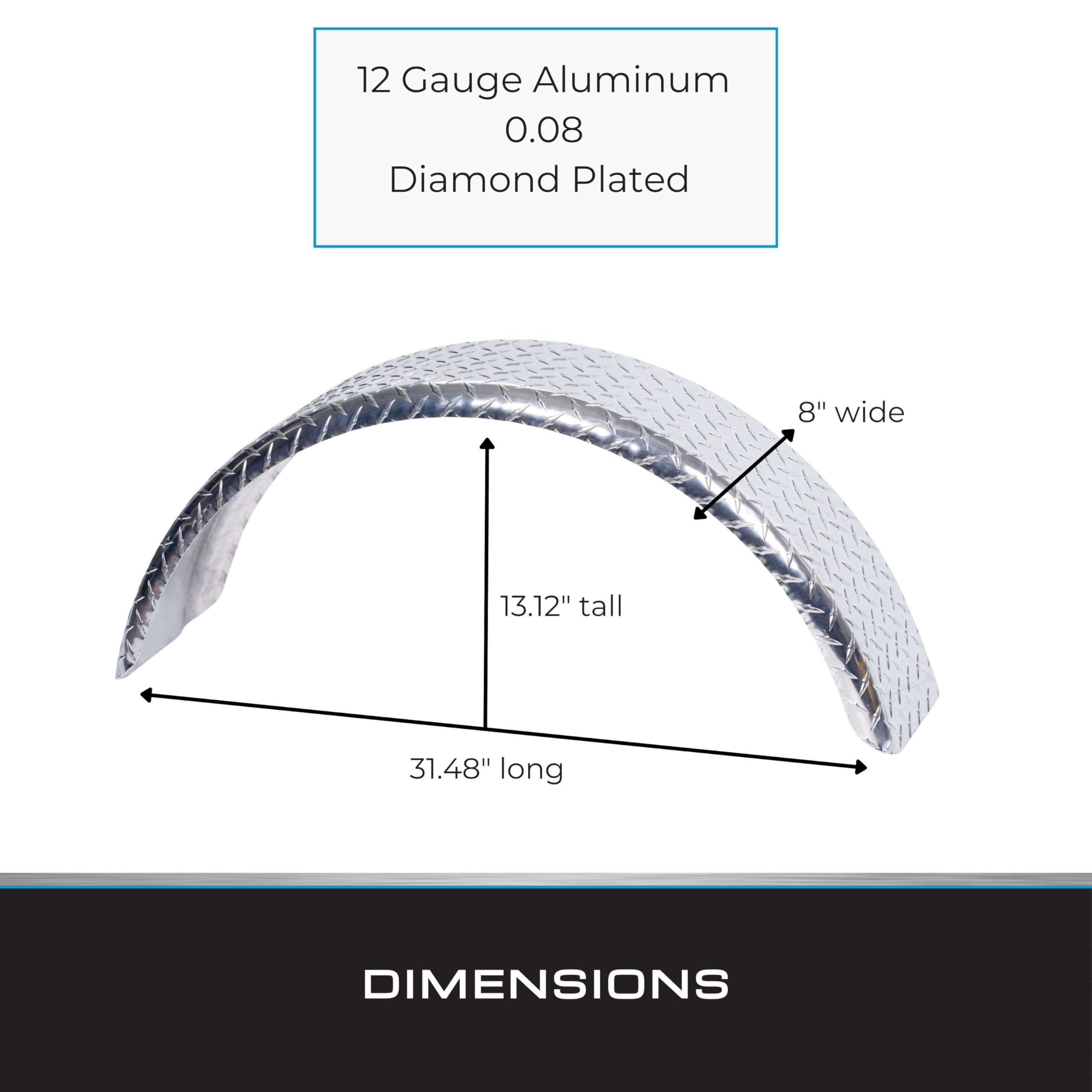 Tie Down Trailer Fenders Single Axle – Diamond Plated, Made in USA – Aluminum Trailer Fender – for 13-16" Wheels – 31.48" L x 8" W x 13.12" H (1 Fender)
